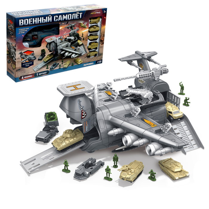 Парковка «Военный самолёт», 4 машинки, подвижные элементы, уценка