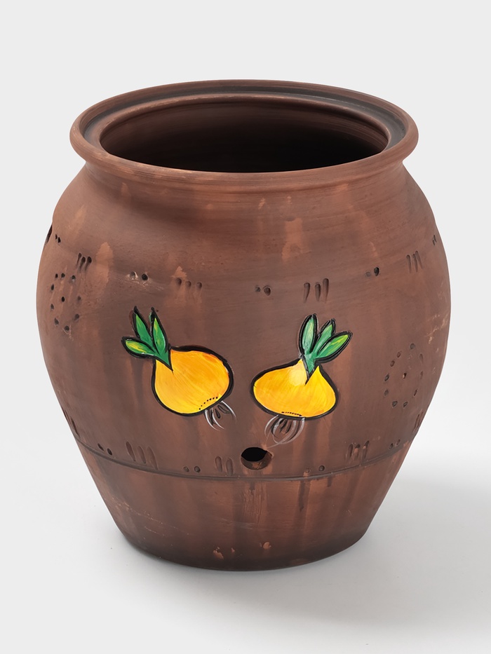 Ценители традиционной керамики оценят аутентичную технику молочения и ручную роспись. Практичные хозяйки найдут удобным хранение лука в доступном месте без распространения запаха. Садоводы и дачники используют ёмкость для сохранения урожая с грядки.