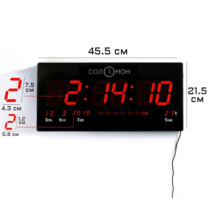 УЦЕНКА Часы - будильник настенные, электронные, календарь, красная индикация, 45.5×21.5×3 см