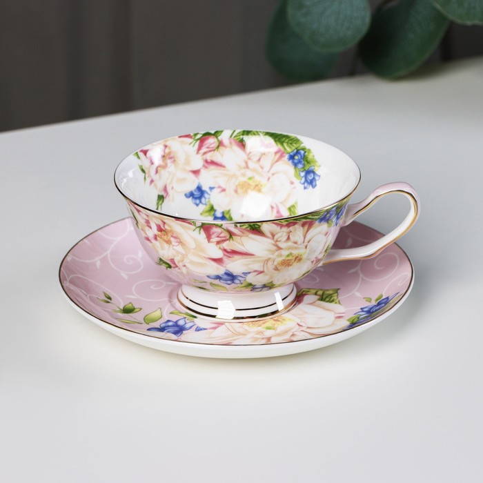 УЦЕНКА Чайная пара фарфоровая «Чайная роза», 2 предмета: чашка 200 мл, блюдце d=15 см