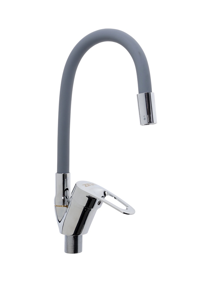 УЦЕНКА Смеситель для кухни ZEIN 2115, однорычажный, гибкий излив, картридж 40 мм, серый/хром