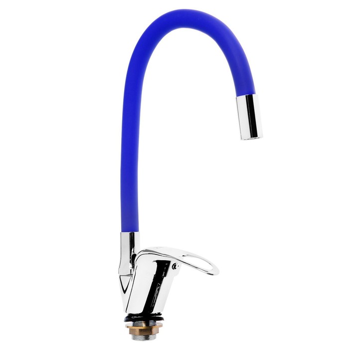 Однорычажный смеситель с гибким изливом, синий/хром — кухонный смеситель с вытяжным носиком в цветном дизайне. Синий корпус, хромированные детали и удобное рычажное управление.