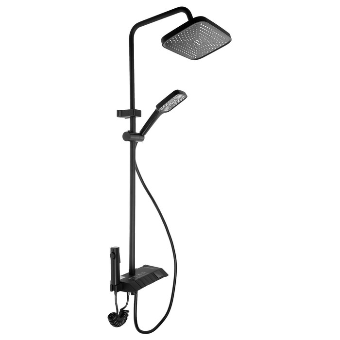 УЦЕНКА Душевая система ZEIN Z3897, верхняя, ручная лейка, ПВХ шланг, экран температуры, черная