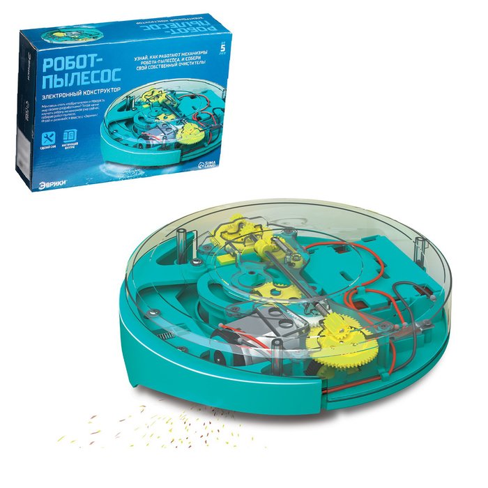 Электронный конструктор «Робот-пылесос» — это увлекательный набор для юных изобретателей и любителей техники. С его помощью можно собрать функциональную модель робота, способного передвигаться и выполнять задачи по уборке. Конструктор станет отличным подарком для ребёнка, интересующегося электроникой, программированием и механикой.