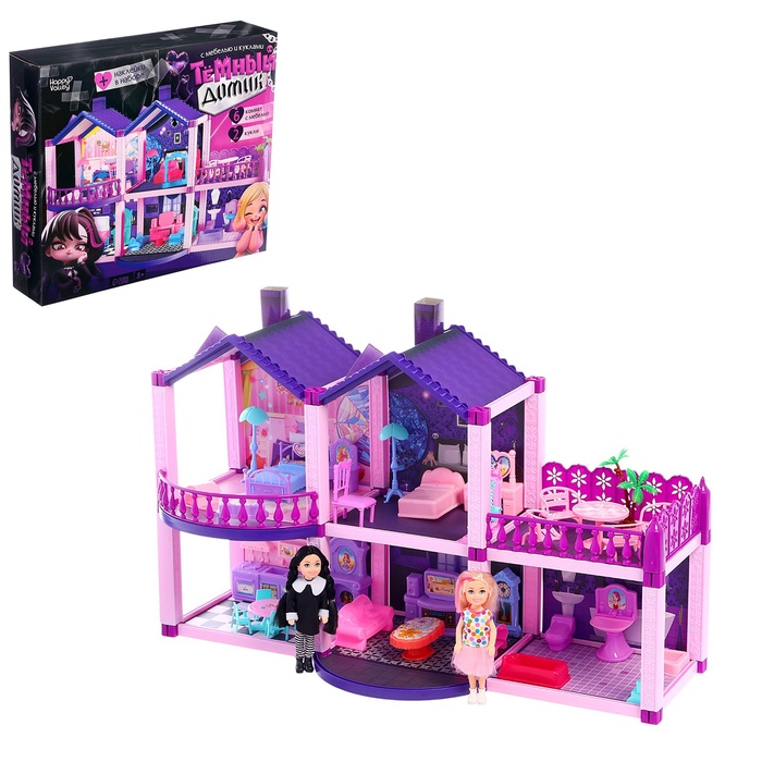 Кукольный дом «Тёмный домик» — это уютный мир для игр и фантазии. В комплекте идут две куклы-малышки, которые станут главными героями. Дом состоит из шести комнат: две спальни, кухня, гостиная, ванная комната и терраса. Каждая комната обставлена мебелью, а наклейки добавят авторский стиль в интерьер.