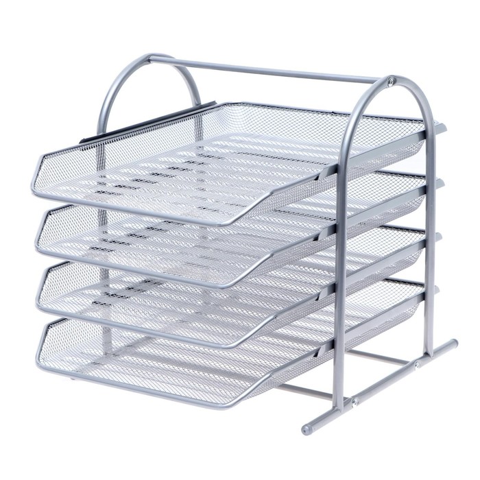 УЦЕНКА Лоток горизонтальный для бумаг 4 отделения, сетка металл, серая