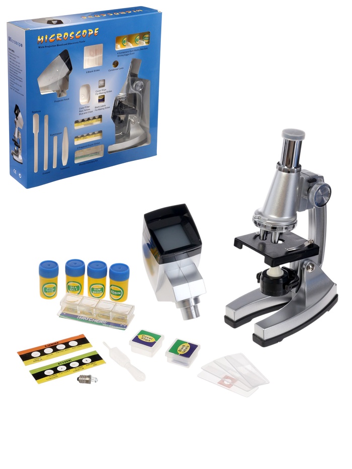 УЦЕНКА Микроскоп с проектором, кратность увеличения 50-1200х, с подсветкой, 2АА настоящая находка для маленького ученого! Этот прибор может быть цифровым микроскопом (изображение выводится на экран)или биологическим микроскопом (наблюдения проводятся через окуляр). Максимальное увеличение достигает 1200 крат, что сравнимо с базовыми моделями именитых брендов.Наблюдать можно все, что угодно! Срезы растений, частички неорганической ткани, срезы насекомых. В комплект поставки, помимо микроскопа, входит множество аксессуаров,благодаря чему уже со стартовым набором можно начать вести весьма серьезные исследования.