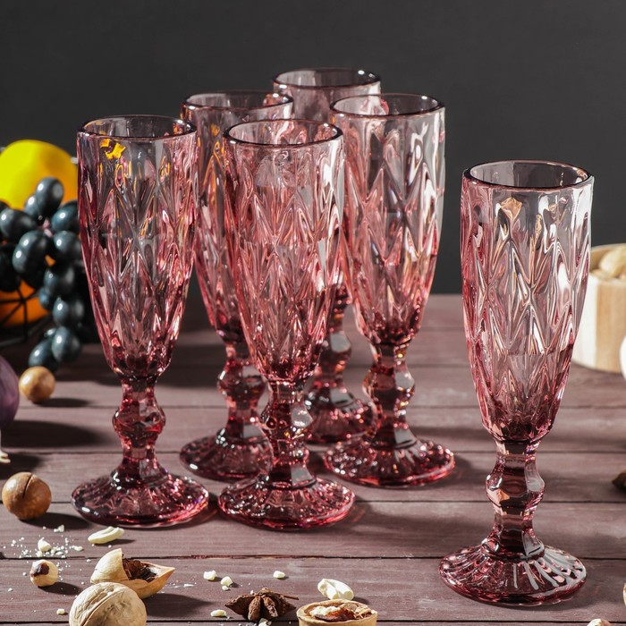 УЦЕНКА Набор бокалов стеклянных для шампанского Magistro «Круиз», 6 шт., 160 мл, цвет розовый
