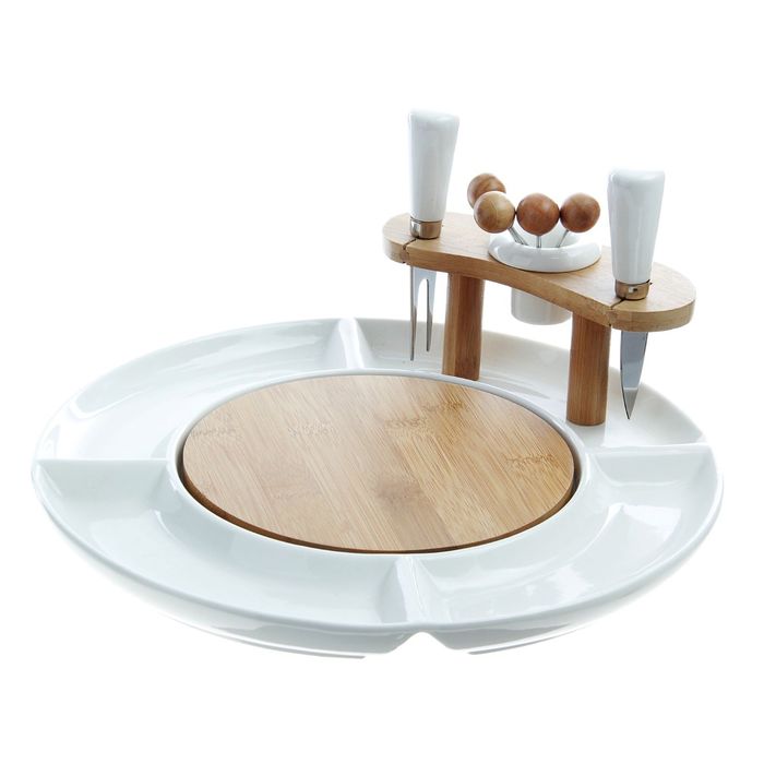 Набор для канапе и нарезки BellaTenero изготовлен из качественного фарфора. Кухонные изделия из фарфора отличаются прочностью и надёжностью, устойчивы к появлению царапин и резким перепадам температур. Благодаря оригинальному дизайну набор отлично впишется в интерьер вашей кухни и станет настоящей изюминкой при сервировке.