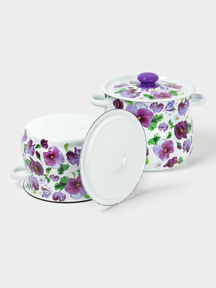 УЦЕНКА Набор эмалированных кастрюль «Анютины глазки», 2 шт.: 5.5 л, 5.5 л, белый