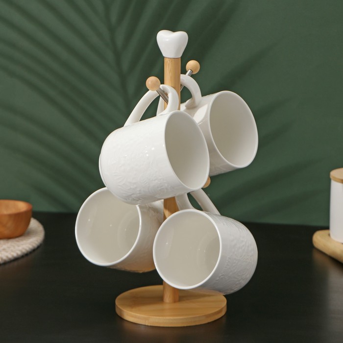 УЦЕНКА Набор кружек фарфоровых на деревянной подставке 4 шт. «Bella Tenero» кружка 400 мл