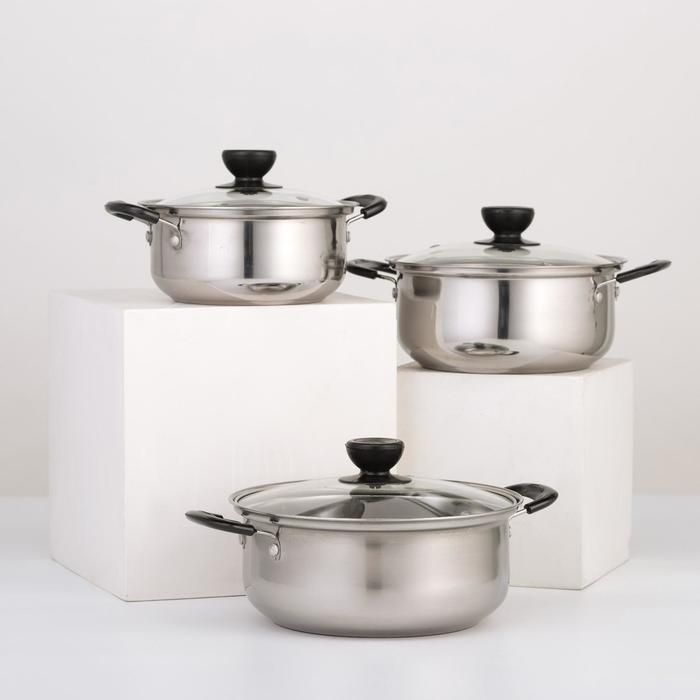 УЦЕНКА Набор посуды, 3 предмета: кастрюли 16/18/20 см со стеклянными крышками, индукция