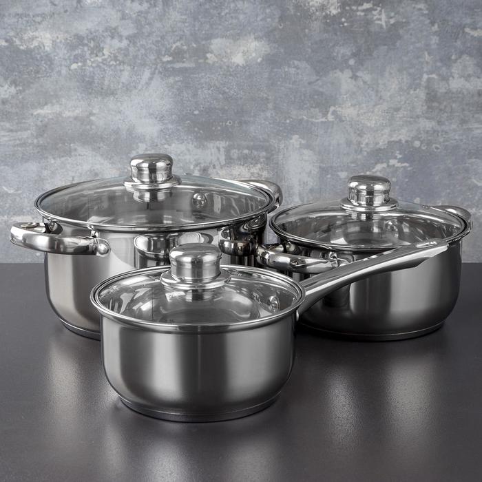 УЦЕНКА Набор посуды «Сильве» 3 шт. : ковш 1.25 л (d=16 см), кастрюли 2.0 л (d=18 см), 3.7 л (d=22 см)
