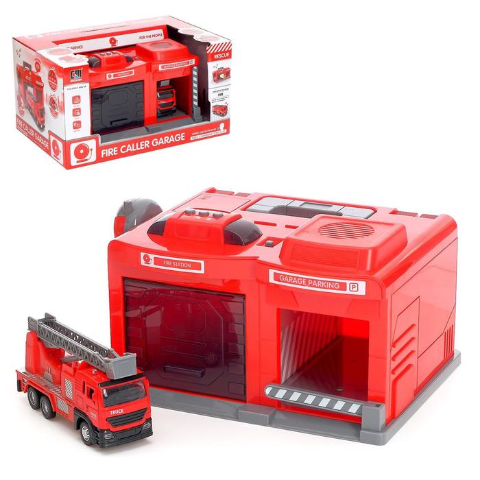 УЦЕНКА Парковка «Пожарная часть» с машинкой и рацией, световые и звуковые эффекты, МИКС