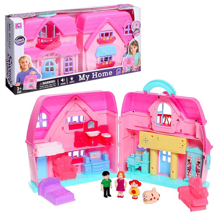 УЦЕНКА Пластиковый домик для кукол «Семья» с фигурками и аксессуарами, световые и звуковые эффекты