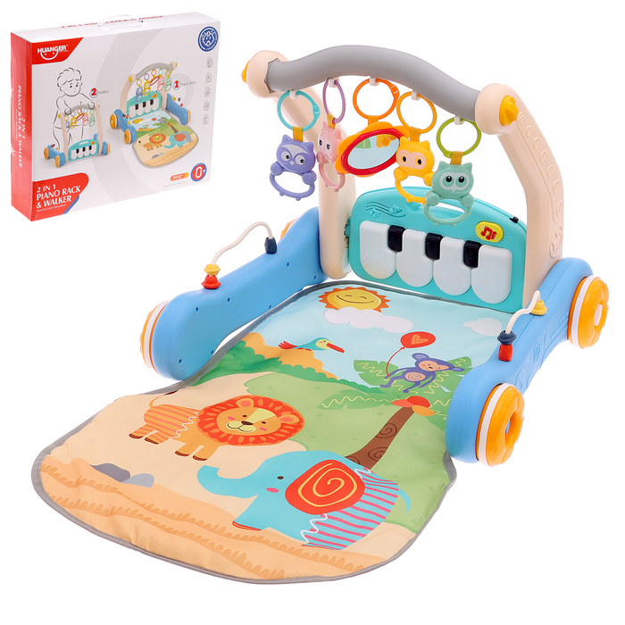Развивающий музыкальный коврик-каталка «Сафари» в синем цвете станет отличным выбором для самых маленьких. Эта универсальная игрушка подходит как для новорожденных, так и для детей постарше, объединяя в себе коврик для игры и каталку для первых шагов.