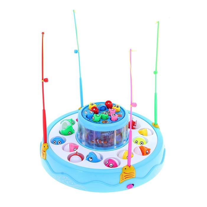 В комплект входит 4 удочки, что позволяет одновременно четырём малюткам играть в эту занимательную игру. Задача каждого карапуза — выловить как можно больше морских обитателей. Победит тот, кто сумеет поймать больше всех забавных рыбок.