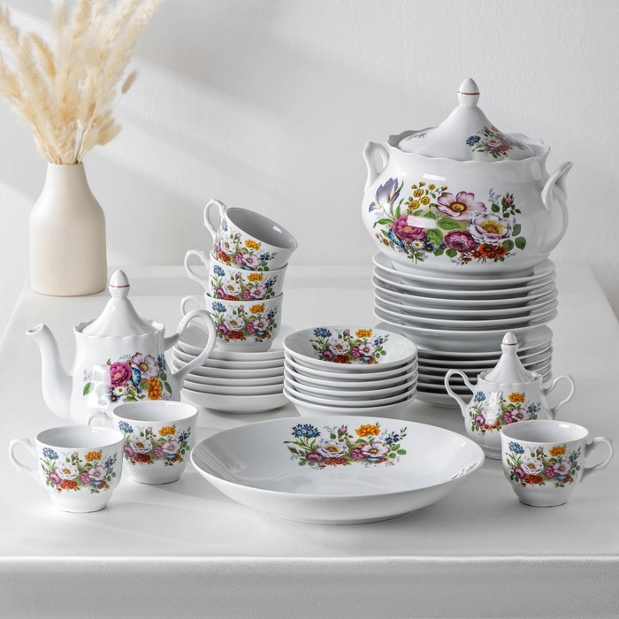 УЦЕНКА Сервиз столовый «Букет цветов», 33 предмета, нет сахарницы