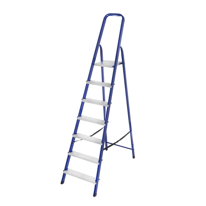 Надёжность в каждой детали: Металлический каркас выдерживает до 150 кг, при этом в сложенном виде (2.2 м) стремянка не занимает много места. «Тундра» 7-ступенчатая — выбор тех, кто ценит профессиональный подход к высотным работам.