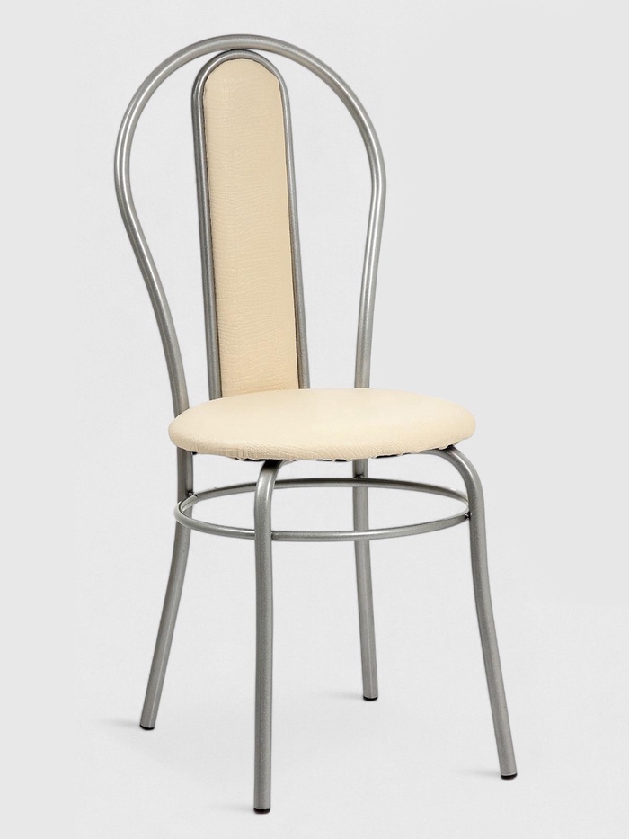 Гармония стиля и удобства. Серебристо-металлический корпус и обивка цвета молочной рептилии делают этот стул идеальным дополнением к любому кухонному интерьеру.