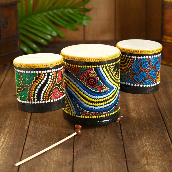 УЦЕНКА Сувенирный музыкальный инструмент "Барабаны тройные" 33х17х11 см МИКС