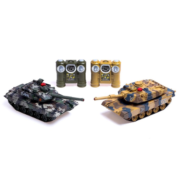 Погрузитесь в атмосферу настоящей битвы с набором танков на радиоуправлении. Этот комплект из двух боевых машин позволит детям и взрослым устроить захватывающее сражение, полное эмоций и адреналина.