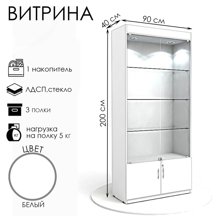 УЦЕНКА Витрина из ЛДСП, 90×40×200 см, белая, стенка ХДФ