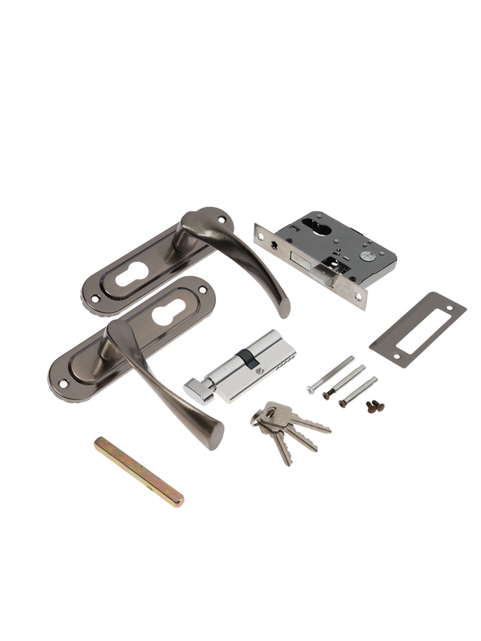 - Цилиндровый механизм: Замок открывается ключом с внешней стороны и поворотной кнопкой изнутри. Сменный сердечник упрощает замену при утере ключей.